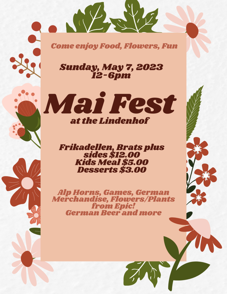 Join us for our annual Maifest on Sunday, May 7, from noon to 6:00 p.m.