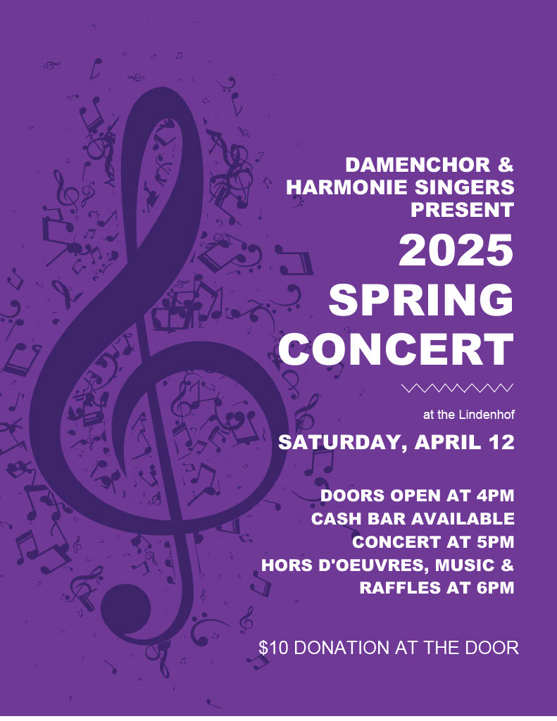 - Concert presented by the Damenchor Germania and Harmonie Concordia Mixed Chorus.